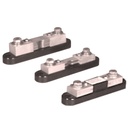 The type C switchboard shunts have an insulating base and can be mounted on conductive surfaces. Available in ranges of 1 Ampere through 500 Amperes with a 50mV output and 1 Ampere through 500 Ampere with a 100mV output, the type C is designed for power cable hook-up or bus-bar mount utilizing the 3/8-16 brass SEMS screws with a captive split-lockwasher and flat washer. This popular design is available without the insulating base if desired. Low Amperage models are furnished with a protective cover to prevent damage to the Manganin element.